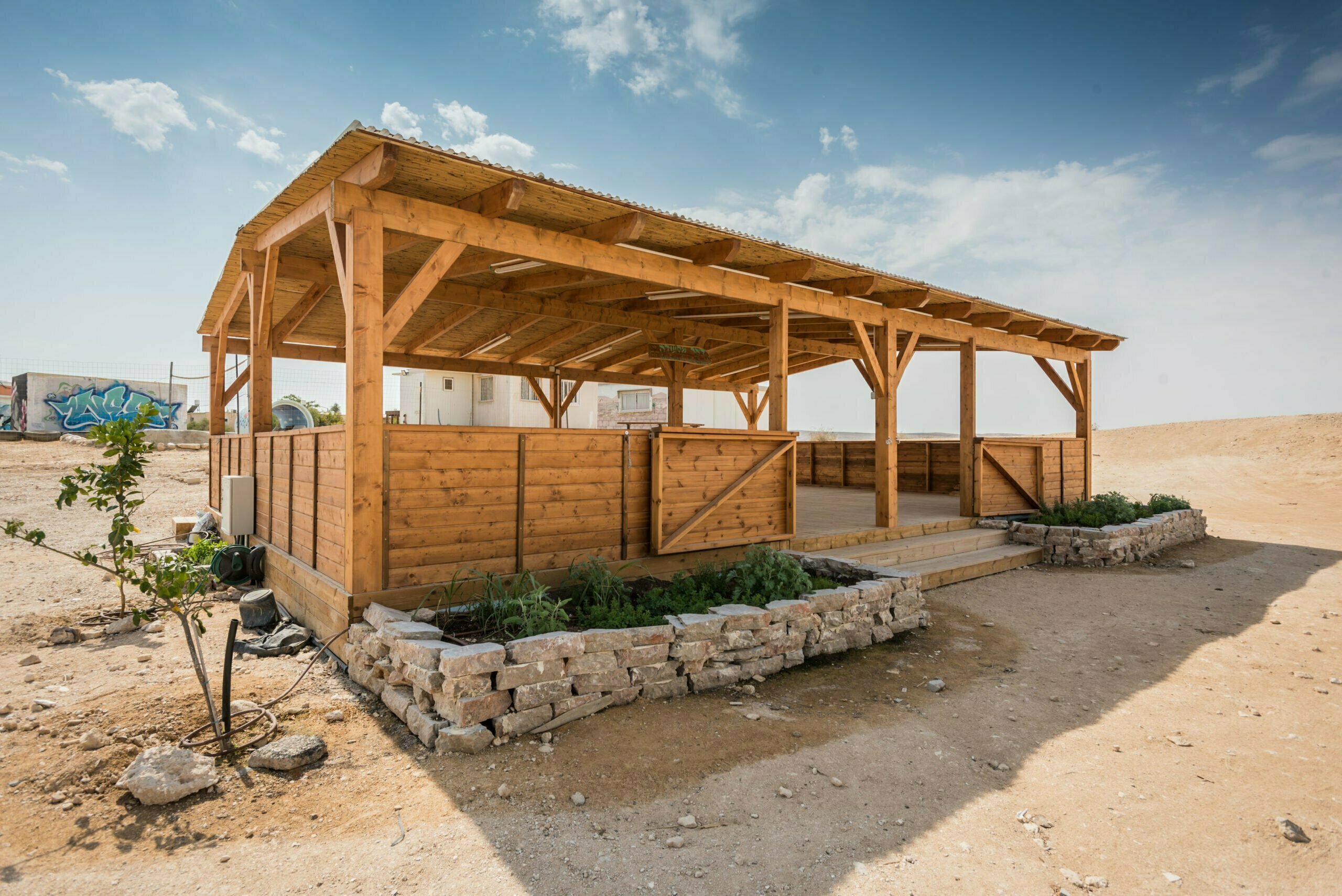 חאן מדברי מיוחד במינו המתהדר בגינת צמחים לתה, טאבון מסורתי ופינת מדורה.