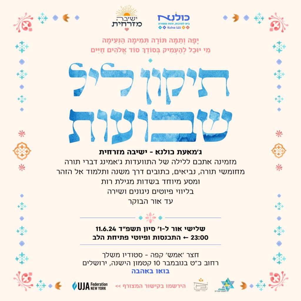 חיבור בין תרבויות מקור, מזרח ומערב – לכדי תורה ישראלית שלמה ועשירה דרך מפגשי תרבות, אירועי מוזיקה, סיורים וסדרות לימוד, בתנועה בין מרחבים.